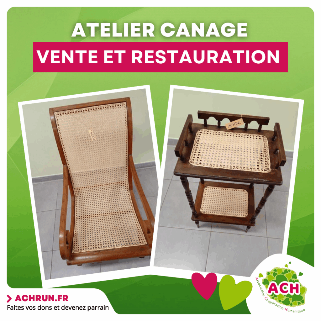 Besoin de restaurer un meuble ou d’en acquérir un nouveau ? Découvrez notre sélection de meubles à vendre ! À l’ACH, nous proposons ces magnifiques pièces, entièrement restaurées par notre atelier de cannage. Une façon idéale de soutenir une noble cause.